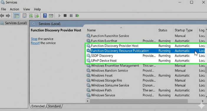 서비스 이름 설명 Function Discovery Provider Host 내 PC를 네트워크에 노출시키는 서비스 Function Discovery Resource Publication 네트워크상의 자원을 검색 가능하게 함 SSDP Discovery 네트워크 장치 검색에 필요 UPnP Device Host 다양한 네트워크 장치 연결 지원